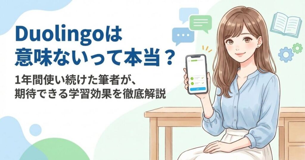 「Duolingoは意味ない」という声は本当なのか?当記事では、利用歴1年の筆者が、意味ないと言われる理由と実際に感じた効果を徹底解説します。Duolingoの学習効果が気になる方は必見です。 -