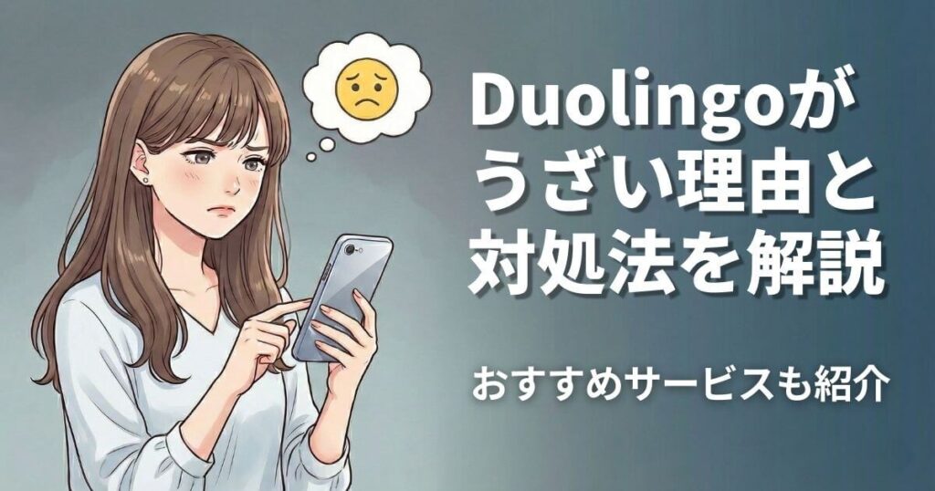 本記事では、「Duolingoの何がうざいの?」と疑問をお持ちの方に向けて、Duolingoがうざいと言われる主な理由6つを、実体験と利用者の口コミを交えて解説します。イライラを軽減する方法と、おすすめ代替アプリも紹介してますので、ぜひ参考にしてください。 -