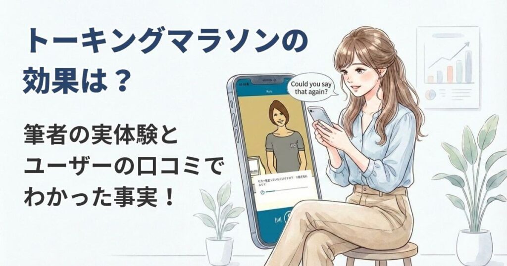 「トーキングマラソンを使えばどんな効果が得られるの?」こんな疑問ありませんか?当記事では実際に3ヶ月使った筆者の実体験と、独自アンケート調査で集めた口コミをもとに、トーキングマラソンの効果を徹底解説します。 -