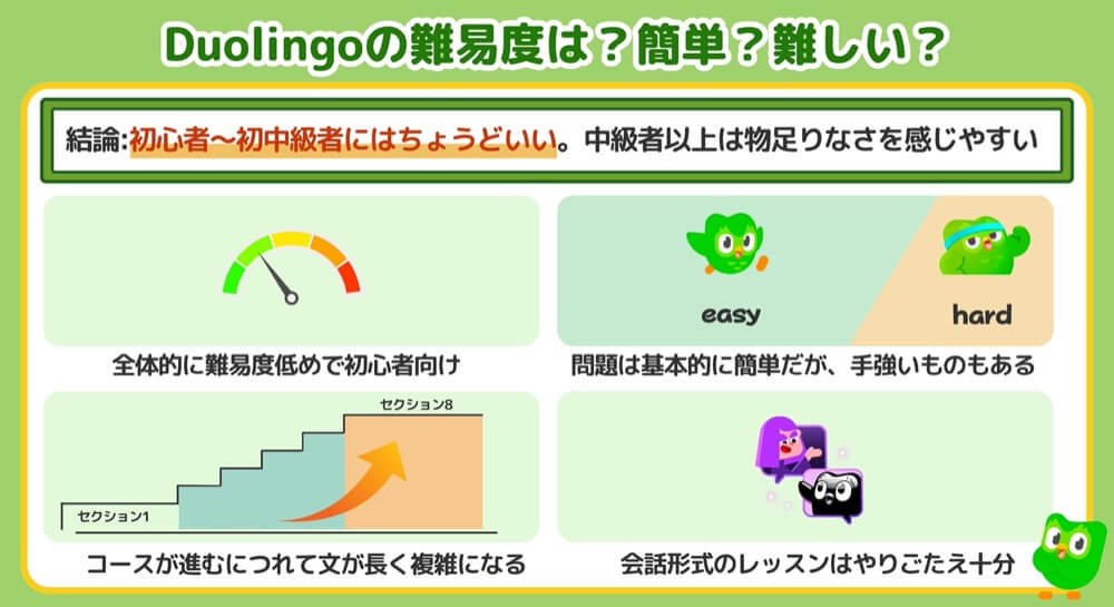 Duolingoの難易度に関するユーザー口コミ