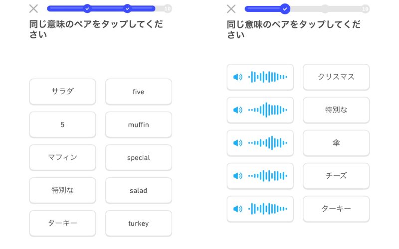 同じ意味のペアを選ぶ形式の問題を通じて、学んだ英単語の意味をおさらいできます。
