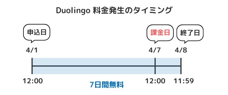 Duolingo Superの月間プランでは7日間、年間プランでは14日間無料でお試しできます。