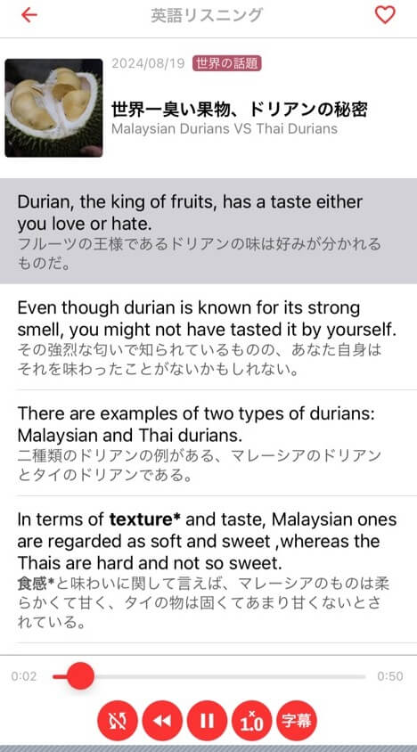 興味をそそられる、ちょうどいい長さの英語コンテンツが完全無料で楽しめるアプリです。