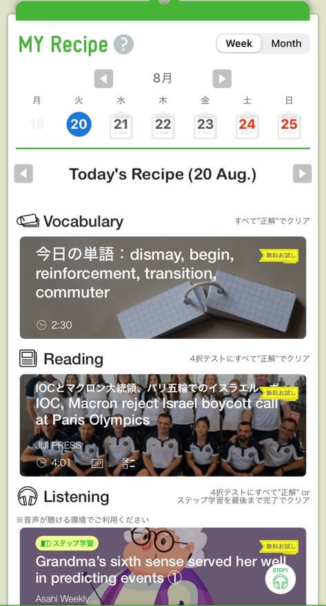 なお、無料版は「英単語・リーディング」学習しかできませんが、ラダーシリーズなら一部無料で聴けます。