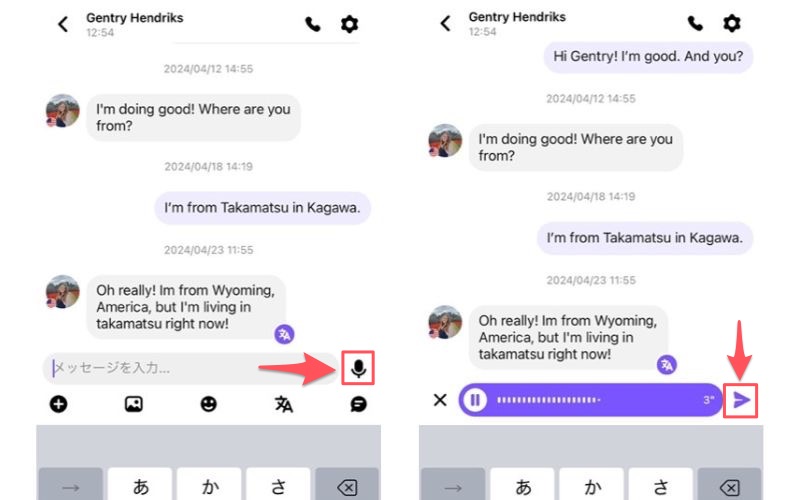翻訳したいメッセージをタップすると、日本語訳が表示されます。