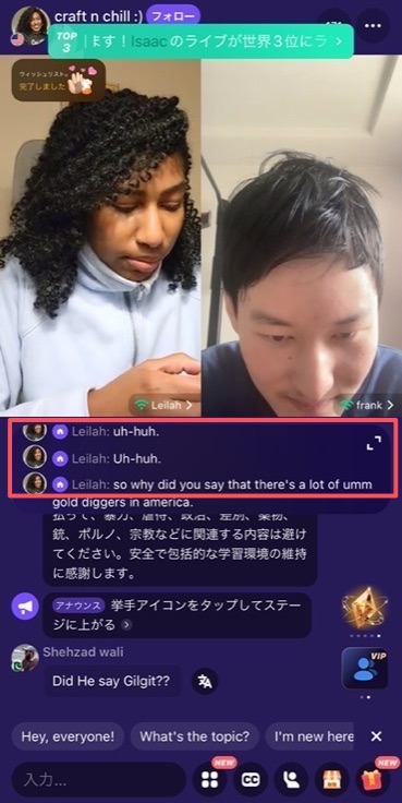 VIP会員になると、会話を自動で書き起こしてくれる「字幕機能」が使えます。
