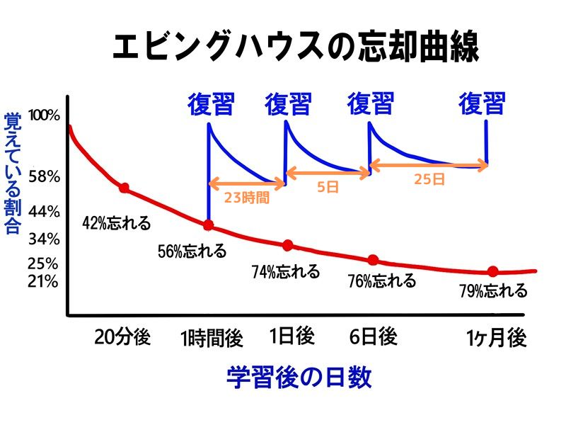 注目していただきたいのが、オレンジ色の部分。復習すればするほど、忘れづらくなっていってますよね。