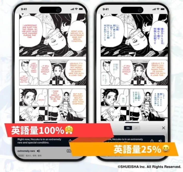スマホ画面に表示された英文をスクロールしながら読むことになるため、紙の書籍よりも目にかかる負担が大きいです。