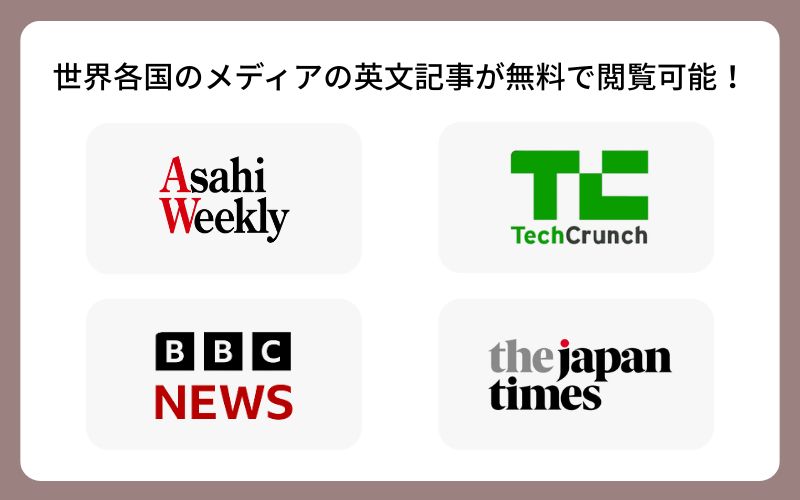 「Asahi Weekly」「BBC News」「Tech Crunch」など、人気メディアの英文ニュースがほぼ全て0円で読めちゃうんです。