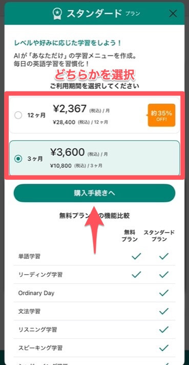 利用期間を選択して、「購入手続きへ」を押す。